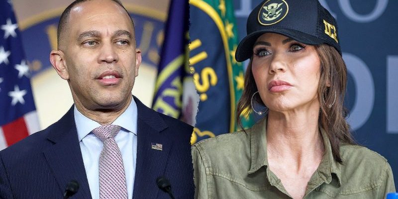 ‘What is clear is that Kristi Noem is completely and totally unqualified. She should have never been confirmed by Senate Republicans,’ Jeffries said of the Department of Homeland Security (DHS) secretary during a Monday press conference. ‘It’s disgraceful that she’s there. She should be run out of town as soon as possible.’